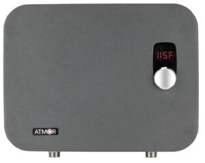 After extensively testing multiple electric tankless water heaters, we at the Filtered Water Guide team have found that Atmor offers reliable solutions for every household. Whether you’re looking to heat water for a single faucet or need a whole-house solution, their electric tankless water heaters fit seamlessly into any space – a major advantage over bulky traditional tanks.
